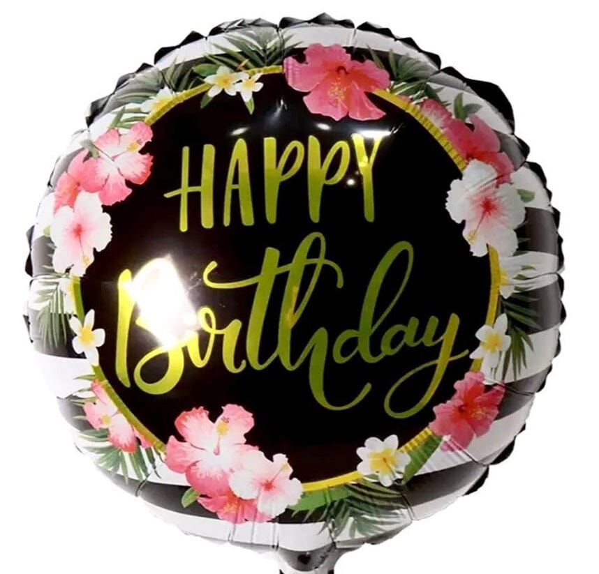 Helium balloon with Happy Birthday and another side Spanish wishes feliz cumpleaños!
