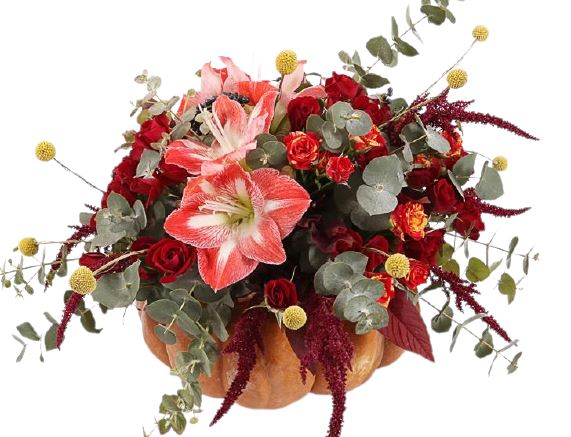 Introducing our Amaranthus Pumpkin Trick Flower Arrangement – a vibrant and festive creation that perfectly captures the spirit of autumn! This unique arrangement combines an array of rich colors and textures, making it an ideal centerpiece for your autumn seasonal celebrations. An ideal centerpiece for thanksgiving dinners, Halloween parties, or fall gatherings or thoughtful gift for friends and family, perfect for celebrating the season. Bring the beauty of autumn indoors and create a warm and inviting