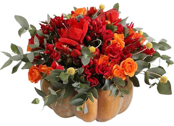 Amaryllis and Spray Roses Halloween Pumpkin – A Spooky Seasonal Delight