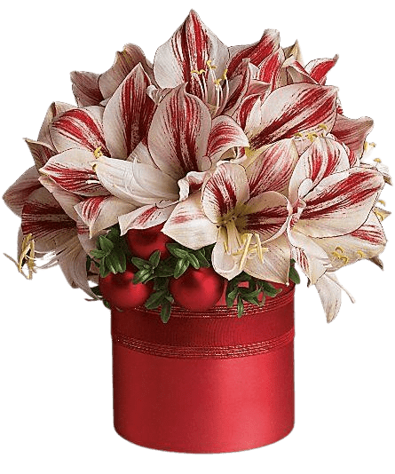 Celebrate the magic of Christmas with our Amaryllis Festive Christmas Flowers Hat Box — a stunning arrangement of vibrant amaryllis blooms, festive baubles, and lush greenery beautifully presented in a stylish hat box. This unique Christmas flower gift is more original than a traditional bouquet and expresses warmth and love better than words. Perfect for sending flowers by post, this luxury floral gift box adds elegance and holiday cheer to any home. The bold, trumpet-shaped amaryllis flowers — available in shades of red, pink, white, and orange — make a striking centerpiece for the festive season. Give a memorable Christmas flower gift that your recipient will treasure. Ideal for spreading joy, sophistication, and festive spirit this holiday season.