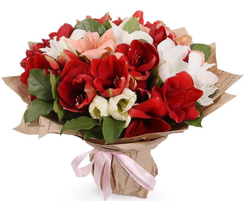 - White Amaryllis: slegant and pure, the white amaryllis adds a touch of grace to the bouquet. It symbolizes purity and new beginnings, making it a perfect choice for celebrations and special moments.
