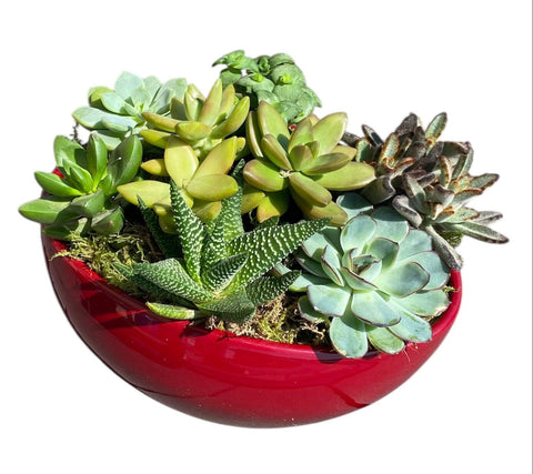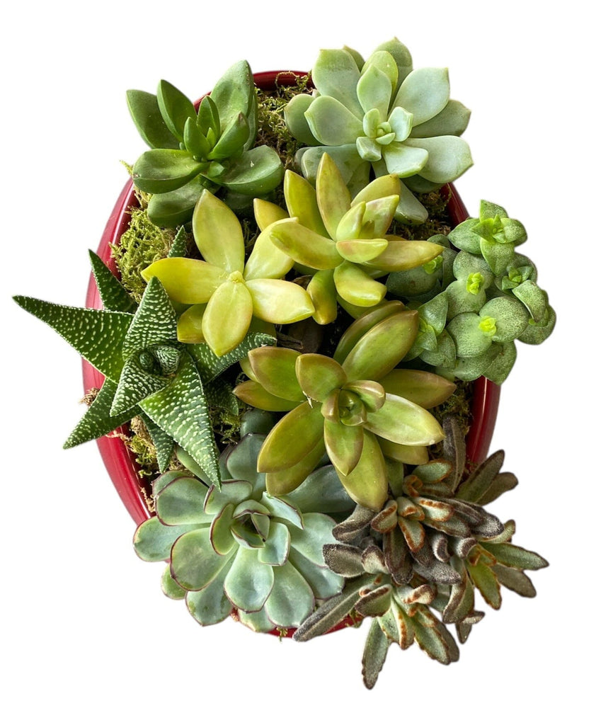 Add a touch of natural elegance to any space with this beautiful assortment of succulent plants arranged in a sleek elliptic ceramic bowl. Featuring a variety of succulent types ranging in height from 5–14 cm, this arrangement brings together rich textures, unique shapes, and vibrant greenery in one stylish display.