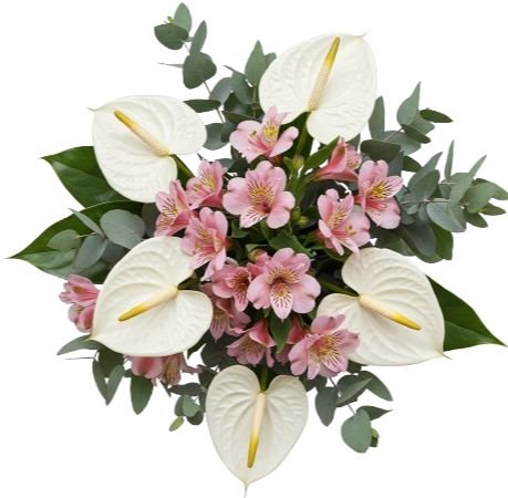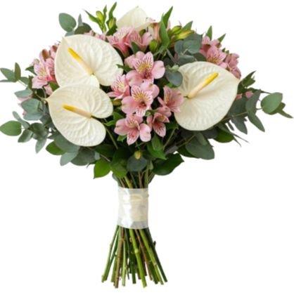 The Anthurium with Alstroemeria Bouquet is a striking and modern arrangement that blends the bold elegance of anthuriums with the delicate charm of alstroemeria blooms. Enhanced with fresh greenery, this bouquet offers a perfect balance of structure, color, and sophistication — ideal for gifting or adding a stylish touch to any space. This bouquet is perfect for modern interiors, thoughtful gifts, or celebratory occasions. With its unique blend of strong lines and soft details, it leaves a lasting impression of elegance and care.