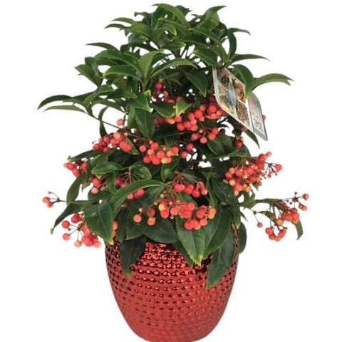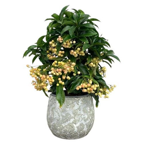 The Ardisia Crenata is available in a variety of berry colors for you to choose from, allowing you to select the perfect hue that complements your decor. Whether you prefer a classic red or a softer tone, this plant is sure to enhance your space with its vibrant, eye-catching berries.
