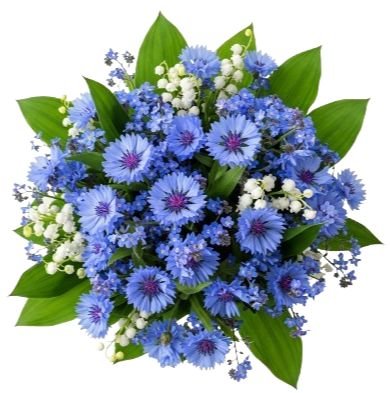 - Cornflowers: add boldness and texture, their bright blue petals creating a refreshing contrast while symbolizing hope and positivity.