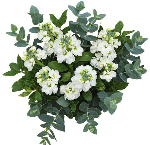Romatic Bouquet of Stock and Eucalyptus – Elegant, Fragrant Floral Arrangement