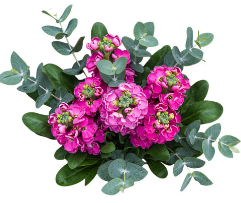 Our Aromatic Bouquet of Stock and Eucalyptus features lush stock flowers in your choice of color, beautifully paired with fresh, aromatic eucalyptus. This bouquet combines vibrant color options with a soothing natural fragrance, making it perfect for birthdays, anniversaries, home décor, or thoughtful gifts for loved ones. Choose your favorite stock color and enjoy a bouquet that’s both beautiful and calming — perfect for any occasion.