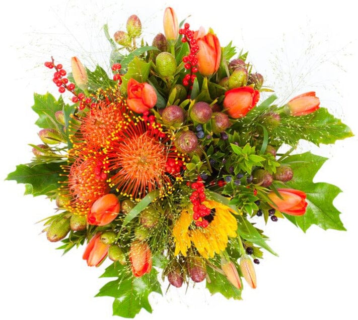 Autumn Blaze & Bloom Hand-Tied Bouquet - Seasonal Elegance