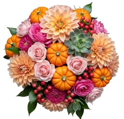 The Autumn Radiance and Roses Bouquet captures the essence of fall with its rich, warm tones and seasonal textures. Combining vibrant roses, dahlias, and unique autumnal accents, this bouquet brings the cozy charm and brilliance of autumn into any space. Perfect for halloween, seasonal décor, or as a thoughtful gift, it’s a radiant celebration of nature’s beauty. This bouquet blends elegance with seasonal charm, making it an unforgettable floral arrangement for both gifting and decorating.