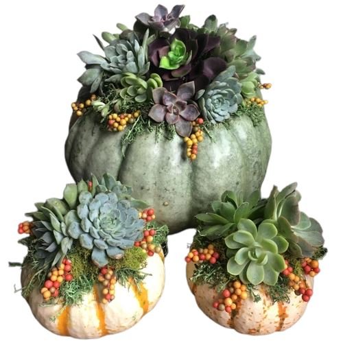 Transform your home this fall with our Autumn Succulent Pumpkin Set! This delightful arrangement features a mix of vibrant succulents nestled in beautifully crafted pumpkins, creating a unique and stylish décor piece for any space. Perfect for celebrating the autumn season, this set adds a modern twist to traditional fall decorations. Ideal for tables, entryways, or as a thoughtful gift, order your Autumn Succulent Pumpkin Set today and bring the beauty of fall indoors!