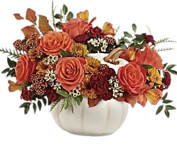 This unique floral gift combines the spirit of fall with the beauty of fresh blooms, making it an ideal present for any occasion. Bring the spirit of autumn into your home with our Autumn White Pumpkin Flower Arrangement. Ideal for Thanksgiving tables, fall gatherings, or fall seasonal decor. A thoughtful and unique gift for friends and family who appreciate the beauty of fall and stunning addition to your living space, bringing warmth and charm to any room.