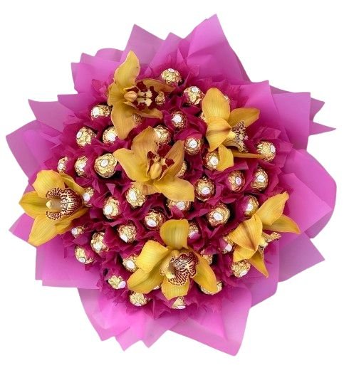 Treat someone special to the perfect combination of luxury and sweetness with our Beautiful Chocolate Bouquet with Cymbidium Orchids. This unique arrangement combines rich, premium chocolates with the elegance of cymbidium orchids, creating a refined and indulgent gift. Ideal for birthdays, Mother's Day, or any special celebration, this bouquet offers both beauty and flavor in one stunning package.