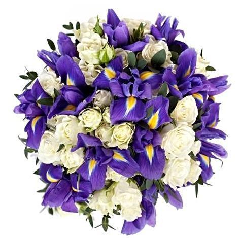 Introducing the Beautiful in Blue Flower Bouquet, an exquisite arrangement that captures the serene beauty and elegance of blue and complementary hues. Perfect for any occasion, this bouquet combines stunning blue blooms with delicate accents to create a harmonious and visually captivating floral display. Beautiful in Blue Flower Bouquet of fresh white spray roses and blue iris with the addition of greenery. Both iris and spray roses are very durable flowers and work fantastic together.
