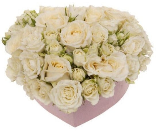 Express your love, admiration, and appreciation with the Beautiful White Spray Roses Heart Box. This elegant floral arrangement features delicate white spray roses flowers, crafted into a heart-shaped design, making it the perfect gift for any romantic occasion, anniversary, or heartfelt gesture.