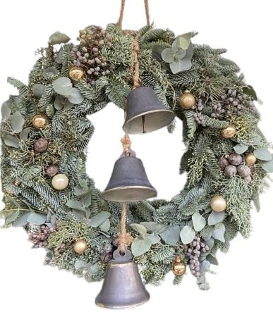 Bells of Winter Wreath - A Festive Fusion of Gold, Silver, and Natural Beauty