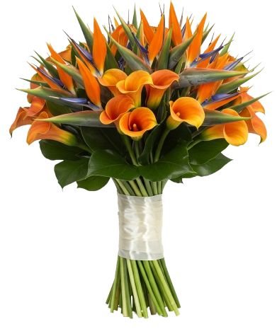Birds of Paradise and Calla Lily Flowers Bouquet - An Exotic Statement of Elegance