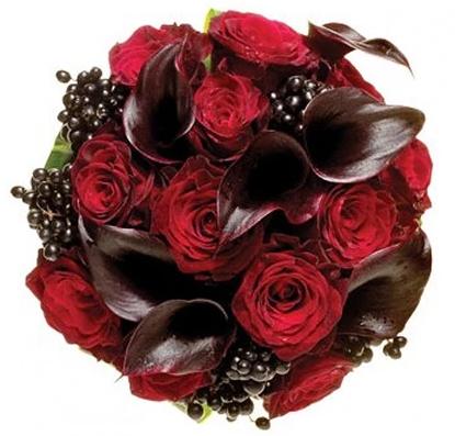 - Black Berry: adding a dramatic contrast, black berries infuse the bouquet with a sense of depth and mystery, complementing the rich hues of the roses and calla lilies.