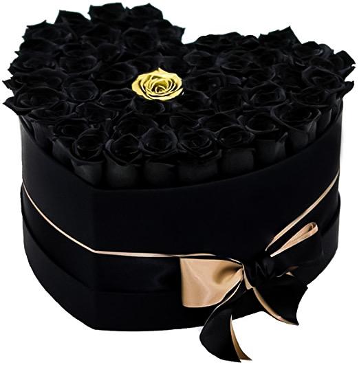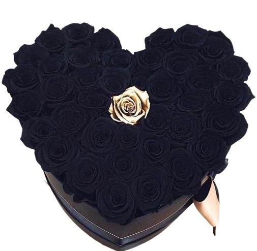 You can choose a size of box - from 10 to 100 stems of Black roses. Available are three shapes of boxes: square, heart and hat box. Choose also colour of box: black, cream or red.
