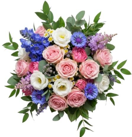 A beautiful bouquet that everyone associates with the beauty of the countryside and the wonderful scent of flowers! Little things and they can be happy. Surprise your loved ones by sending them a bouquet of spray roses, blue delphinium and cornflowers. You certainly bring a smile to their faces.
