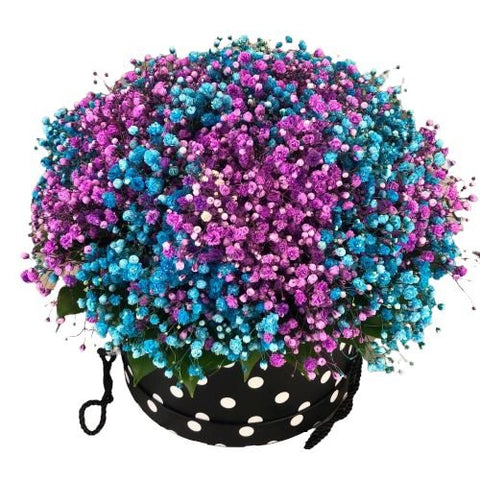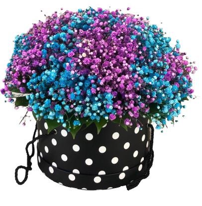 Looking for a unique and romantic gift that will surprise and delight? Our Blue and Purple Baby's Breath Box featuring blue gypsophila and purple gypsophila is the perfect choice! This exquisite flower arrangement offers a stunning mix of soft, ethereal colors, bringing a sense of calm and beauty to any space.