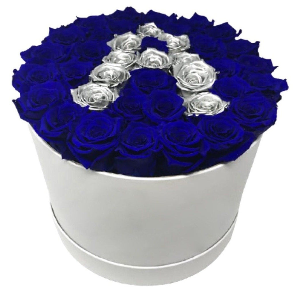 Blue and Silver Roses Initial Flower Box – A Unique Floral Arrangement for Special Occasions