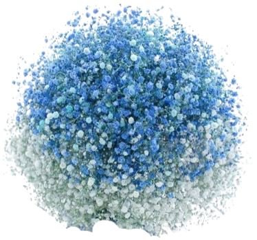 - White Gypsophila: known for its purity and simplicity, creates a cloud-like softness with its tiny white blooms. This timeless flower symbolizes innocence, freshness, and everlasting love, making it the perfect complement to the vibrant blue gypsophila.
