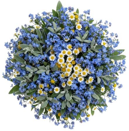 - Blue Forget-Me-Nots: delicate and striking, forget-me-nots add a pop of calming blue, representing true love, remembrance, and enduring affection.