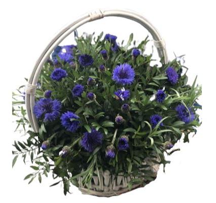 Whether as a thoughtful gift or a stunning centerpiece, our Blue Cornflowers with Greenery Basket is sure to delight and inspire, inviting you to embrace the simple pleasures of life.
