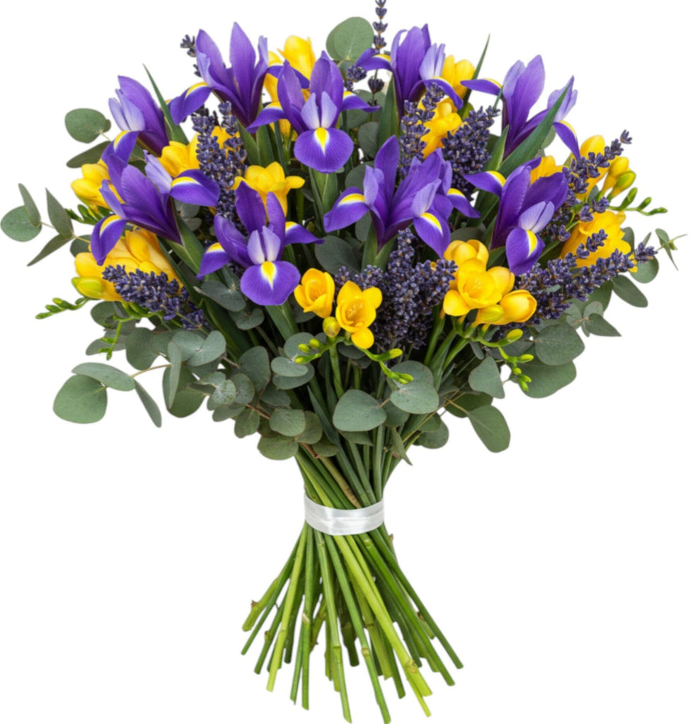 Delicately fragrant and beautifully fresh, the Blue Iris and Freesias Bouquet with Lavender is a soothing and elegant arrangement designed to uplift and delight. This graceful bouquet is a serene blend of color, fragrance, and texture. At its heart are striking blue iris blooms — symbolizing hope, wisdom, and courage — with their rich indigo petals bringing a bold, dramatic touch. This bouquet is perfect for expressing calm joy, heartfelt wishes, and peaceful beauty — ideal for birthdays, get-well gifts, or simply to uplift someone's day.