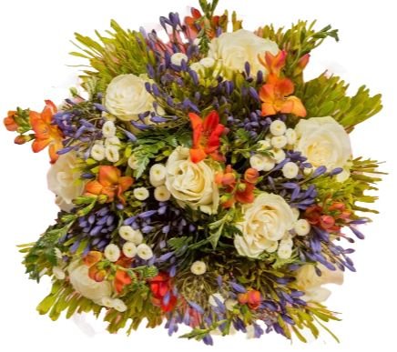 Experience the perfect harmony of beauty and fragrance with our Bouquet of Agapanthus and Freesias with Roses. Featuring striking agapanthus, delicate freesias, and classic roses, this bouquet is ideal for special occasions like birthdays, anniversaries, or thoughtful gestures. A refined and graceful gift, it brings color, scent, and joy to any space.