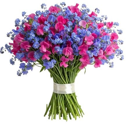 Celebrate beauty, tenderness, and meaningful connections with our Bouquet of Blue Forget-Me-Not and Sweet Pea – a graceful floral arrangement that blends timeless charm with soft, romantic fragrance blooms. Perfect for birthdays, anniversaries, or simply to share a heartfelt message, this bouquet captures both elegance and emotion in every stem. Delicately arranged with expert care, the Bouquet of Blue Forget-Me-Not and Sweet Pea is light, airy, and filled with symbolic meaning. Whether as a romantic gesture, a thoughtful gift of friendship, or a way to commemorate special memories, this bouquet leaves a lasting impression on both the heart and the senses.