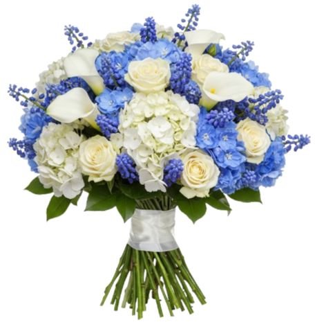 Discover the serenity of our Bouquet of Blue on White Blooms, where the delicate beauty of blue and white flowers intertwine to create a captivating harmony. Meticulously handcrafted, each bloom exudes elegance and tranquility, making it an ideal choice for weddings, receptions, or simply infusing any space with a sense of calm.