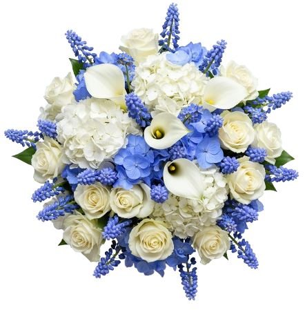 Each stem is carefully selected for its freshness and beauty, ensuring that every bouquet is a masterpiece of floral artistry. Delicate white blossoms radiate purity and grace, while the subtle pops of blue infuse the arrangement with a sense of tranquility and serenity.