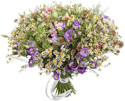 Bring charm, freshness, and elegance into any space with the Bouquet of Daisy Tanacetum with Duo Lisianthus — a beautifully curated mix of soft florals and lush greenery, perfect for any occasion.