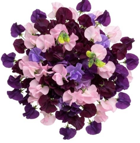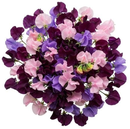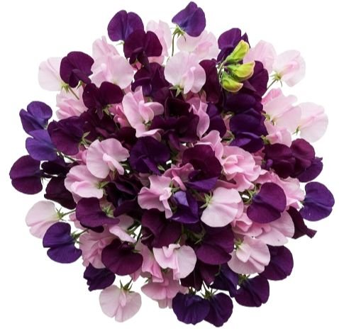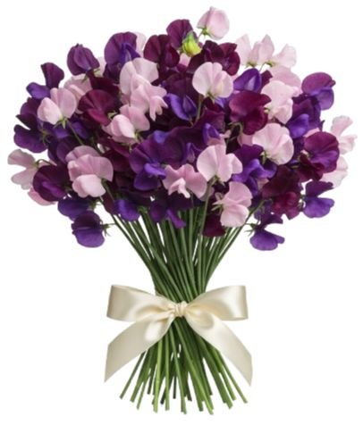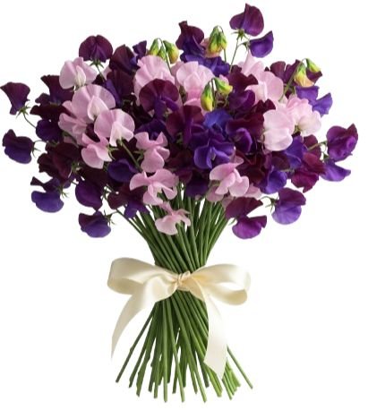 This bouquet is a delicate harmony of color and fragrance, showcasing the timeless charm of sweet peas. The contrast of deep purple and pink creates a refined yet whimsical arrangement, celebrated for its sweet fragrance and poetic beauty — perfect for expressing gratitude, affection, or simply bringing joy. Send a stunning gift with this bouquet of sweet peas in purple and pink tones – delicate, fragrant, and perfect for loved ones.