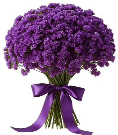 Discover the understated beauty of the Bouquet of Deep Purple Limonium, a delicate yet striking floral arrangement that captures the charm of wildflower meadows with a touch of sophistication. Known for its graceful clusters of tiny blossoms and deep purple hues, limonium (often called sea lavender or misty statice) is admired for both its beauty and durability. Limonium is valued for its exceptional longevity, making it not only a beautiful bouquet when fresh but also a charming dried arrangement that continues to delight long after the occasion has passed.