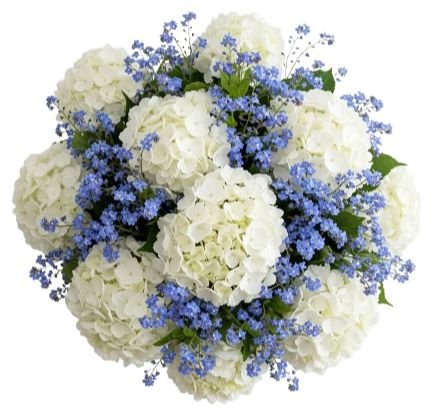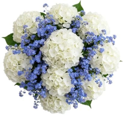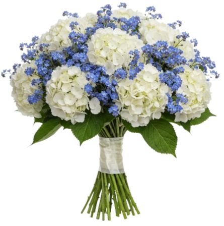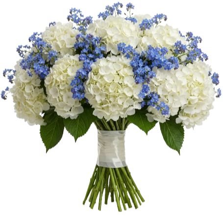 Bouquet of Hydrangea and Forget Me Not - A Romantic Blend of Elegance and Memory