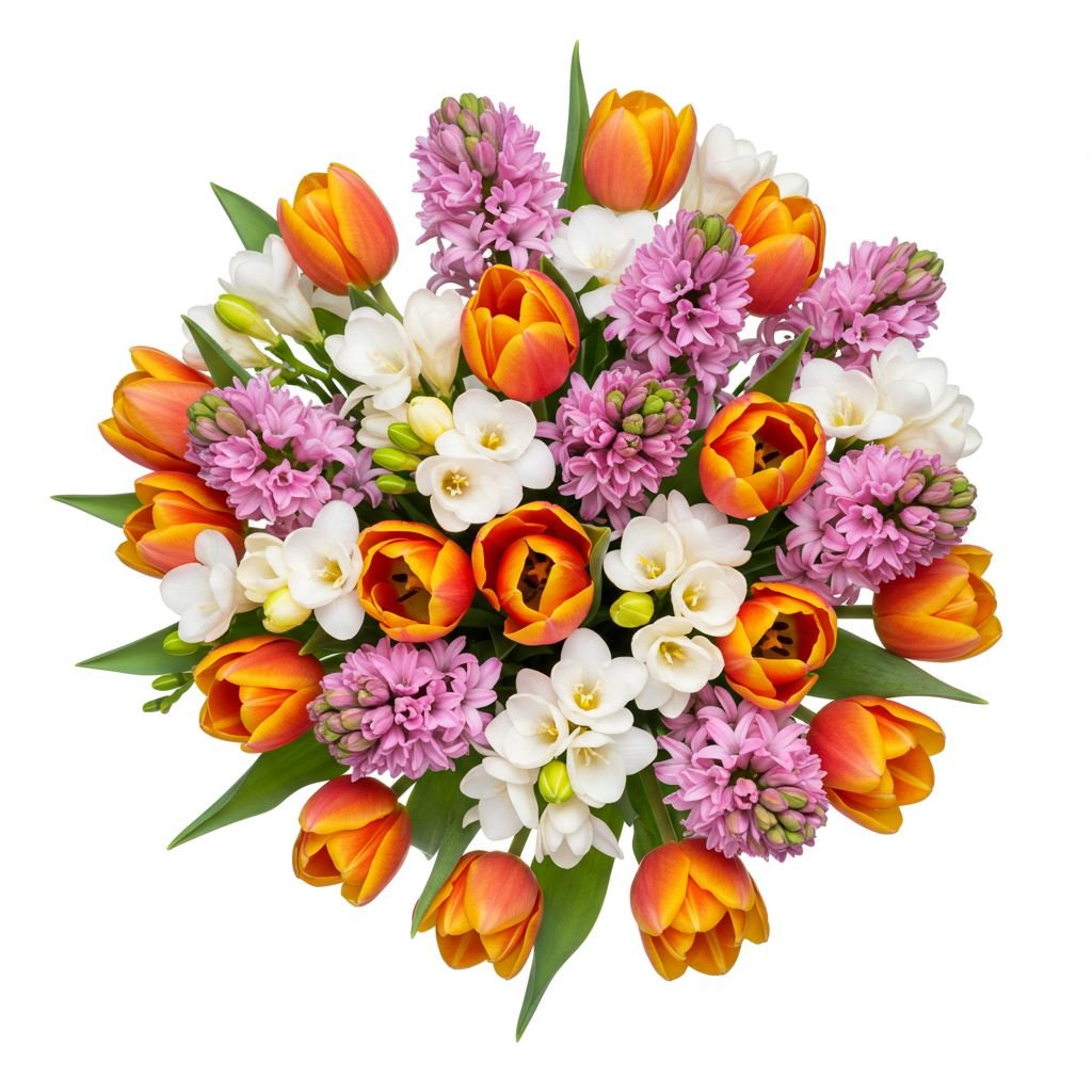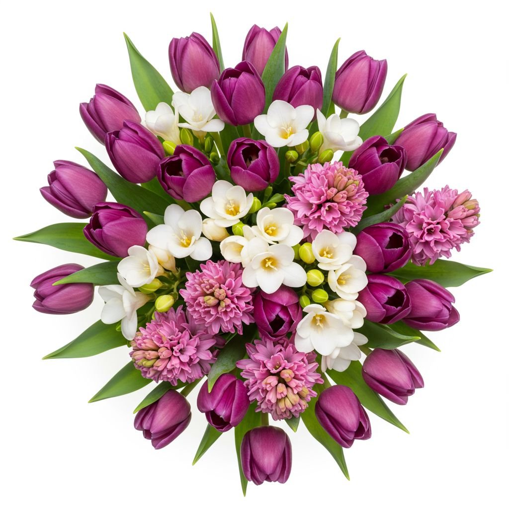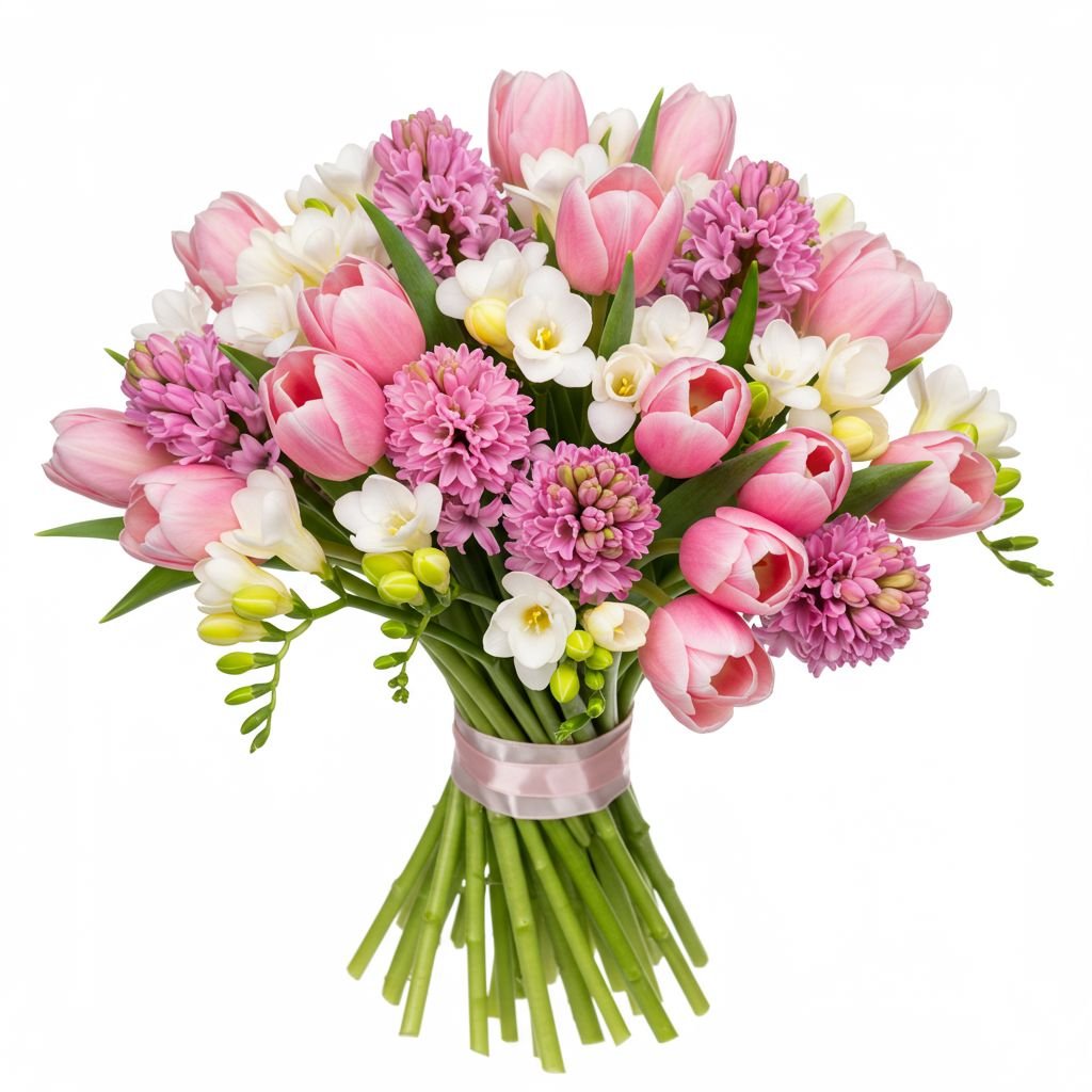 Vibrant Pink Hyacinth and Tulips with Freesias – A Perfect Spring Bouquet