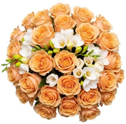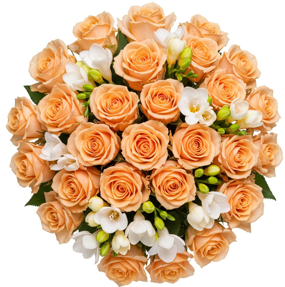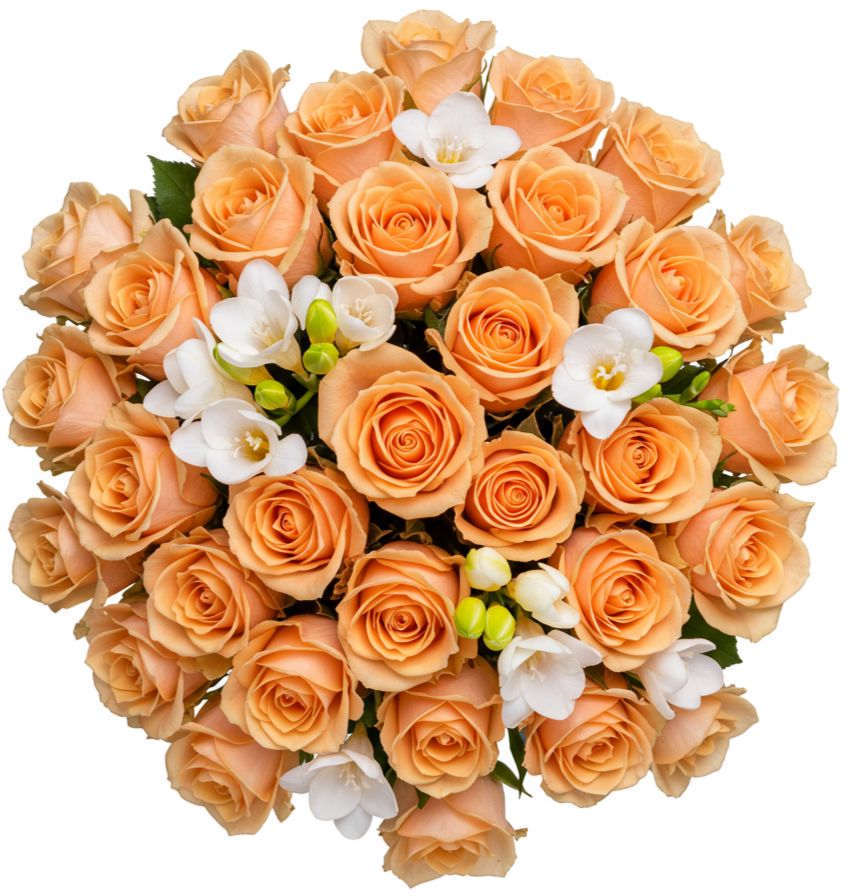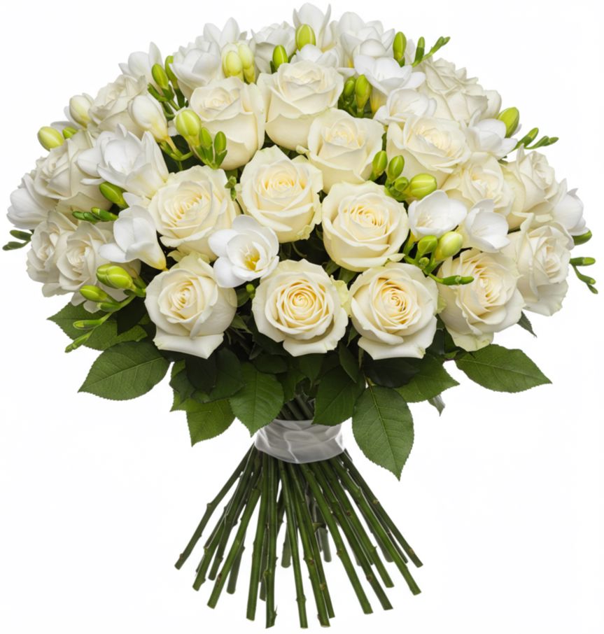 Elegant, fragrant, and timeless, the Bouquet of Roses and White Freesias is a graceful arrangement perfect for expressing heartfelt emotions. The combination of lush roses and airy freesias creates a bouquet that is both luxurious and refined. This versatile arrangement is perfect for weddings, anniversaries, thank-you gifts, or simply brightening someone’s day with a touch of elegance and fragrance. It’s not just flowers — it’s a sensory experience of beauty, scent, and sentiment.