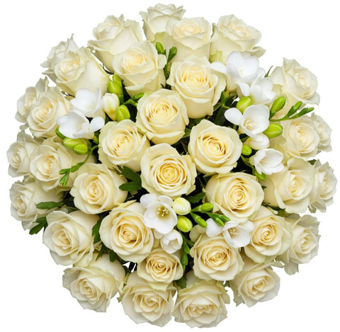 Beautiful Roses & White Freesias Bouquet – Ideal for Any Occasion