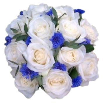 - Blue Cornflowers: these striking blue flowers add a touch of whimsy and vibrancy to the bouquet. Symbolizing prosperity, hope, and elegance, they create a lovely contrast against the soft petals of the roses.