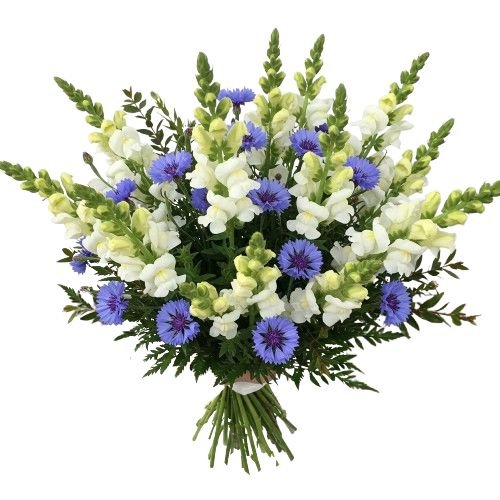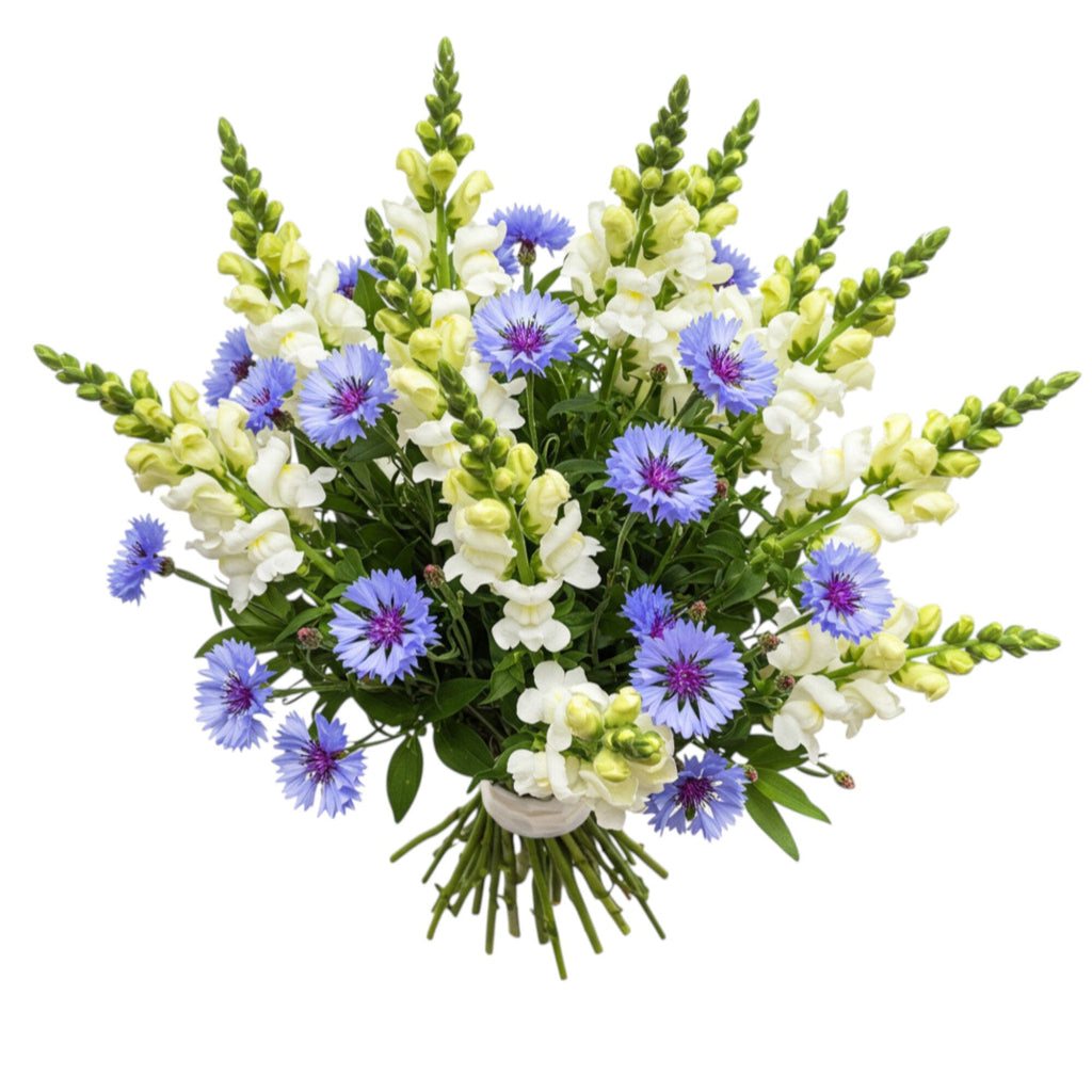 Brighten any day with our Bouquet of Snapdragons and Cornflowers, a vibrant and uplifting arrangement that celebrates texture, movement, and natural charm. Featuring tall, graceful snapdragons in your chosen color, striking blue cornflowers, and fresh greenery, this bouquet is perfect for spring and summer gifting or simply bringing beauty indoors.