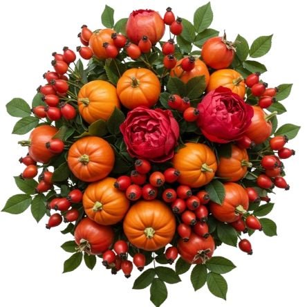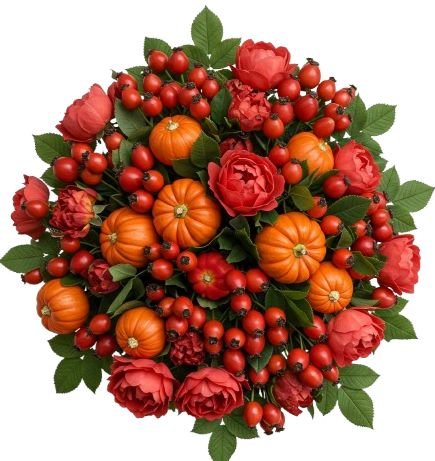 This unique bouquet captures the warmth and richness of the season with a delightful mix of vivid blooms, textured berries, and a charming pumpkin accent. Perfect for autumn celebrations, it balances sophistication with a touch of rustic whimsy. The Bouquet of Spray Roses with Rose Hips and Mini Pumpkin is perfect for autumn weddings, festive gatherings, or as a charming seasonal gift. Combining romance, texture, and rustic cheer, it’s an arrangement that celebrates the beauty of fall in a truly unique way.