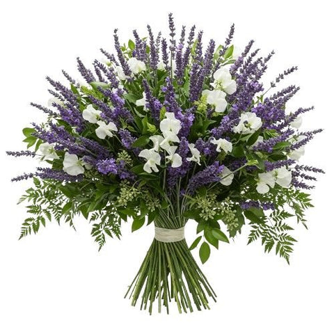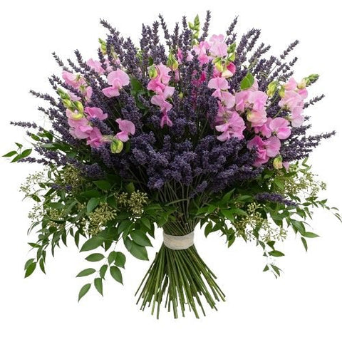 Delight in the elegance of our Bouquet of Sweet Pea and Lavender with Greenery. Combining soft sweet peas, aromatic lavender, and lush greenery, this bouquet is ideal for Mother's Day, anniversaries, or a thoughtful gift. Delivered fresh by Flowers Box London. Order now for next-day delivery across the UK and share the delicate beauty and fragrance of our Bouquet of Sweet Pea and Lavender with Greenery with someone special!