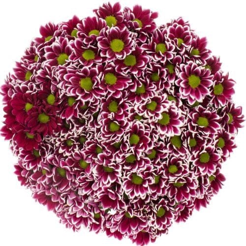 - Cerise and White Two Tone Daisy Chrysanthemum: this exquisite flower features elegantly variegated petals in vibrant cerise and pristine white tones, creating a dramatic and eye-catching effect. The unique two-tone petals make these flowers a standout choice for any floral display.
