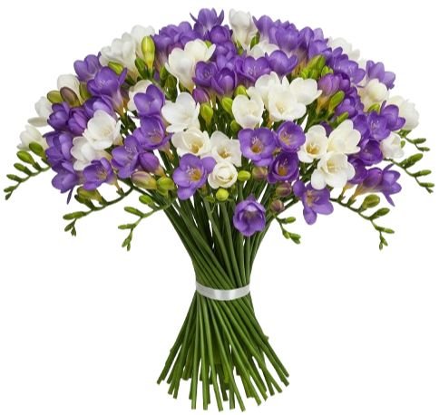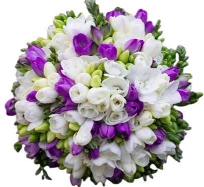 The Bouquet of White and Purple Freesias is a graceful and fragrant arrangement that combines the purity of white blooms with the rich elegance of purple, creating a harmonious and timeless floral display. Known for their sweet scent and delicate, trumpet-shaped blossoms, freesias bring both beauty and fragrance to any occasion. This bouquet is ideal for expressing admiration, celebrating special occasions, or simply bringing a moment of serenity and joy to someone’s day. Its gentle fragrance and refined appearance make it a thoughtful and memorable gift.