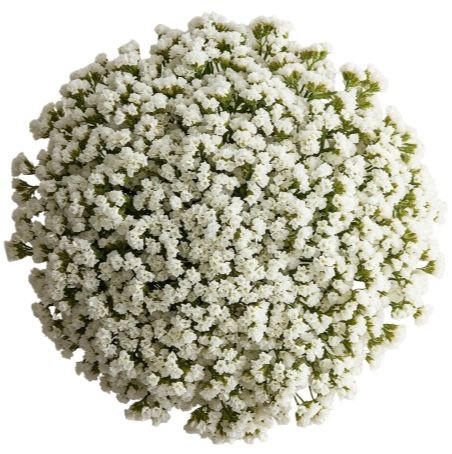 - White Limonium: often referred to as "sea lavender" or "misty flowers," is known for its tiny, cloud-like blossoms that create a soft, ethereal effect. Its crisp white tones symbolize purity, sincerity, and remembrance, making it a versatile choice for a wide variety of occasions. Whether offered as a thoughtful gift, used to express heartfelt emotions, or styled as a minimalist decorative accent, the Bouquet of White Limonium brings serenity and freshness to any setting.