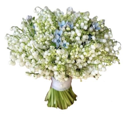 Celebrate your special day with our Bridal Bouquet of Lily of the Valley and Oxypetalum, a graceful and timeless floral arrangement perfect for brides seeking elegance and charm. This bouquet features the classic Lily of the Valley, known for its delicate white bell-shaped flowers symbolizing purity, humility, and sweetness — making it a traditional favorite for weddings. Complementing it is the soft, serene blue Oxypetalum, also known as Tweedia, adding a subtle splash of pastel blue that brings a dreamy and romantic touch to the bouquet.