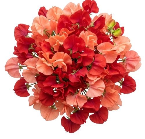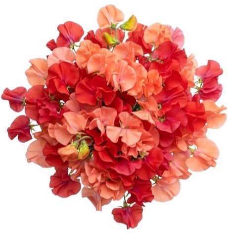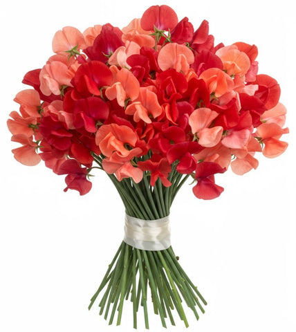 Bright Bouquet of Red and Coral Sweet Pea – A Cheerful Burst of Color and Fragrance