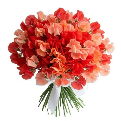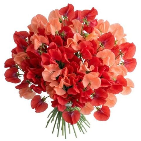 Designed to impress with both beauty and scent, the Bright Bouquet of Red and Coral Sweet Pea is perfect as a thoughtful gift or an elegant addition to any home. Enjoy swift doorstep delivery from the best online flower shop. Send a gift full of color and joy with the Bright Bouquet of Red and Coral Sweet Pea!
